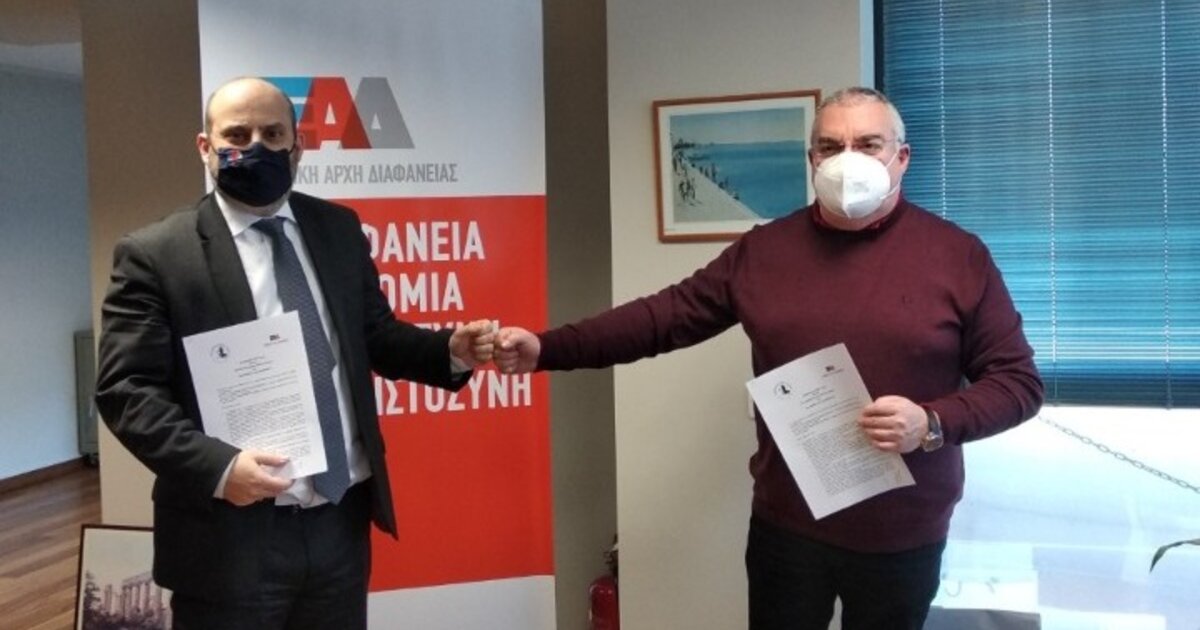 Μνημόνιο συνεργασίας μεταξύ της Εθνικής Αρχής Διαφάνειας και του Πανεπιστημίου Δυτικής Αττικής (ΠΑΔΑ) υπέγραψαν ο Διοικητής της Αρχής Άγγελος Μπίνης, με τον Πρύτανη Παναγιώτη Καλδή, με αντικείμενο την παροχή τεχνογνωσίας και συμβουλευτικών υπηρεσιών από την Εθνική Αρχή σε θέματα εσωτερικού ελέγχου και ενίσχυσης των μηχανισμών ακεραιότητας.