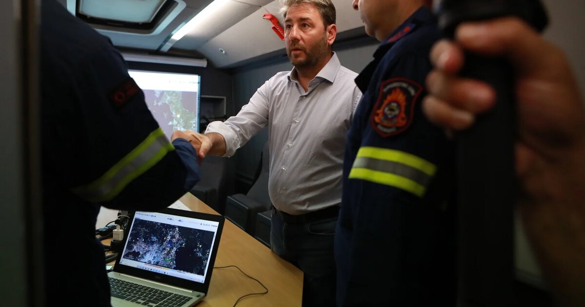 Ο Πρόεδρος του ΠΑΣΟΚ-Κινήματος Αλλαγής, Νίκος Ανδρουλάκης, βρέθηκε κοντά στους πυροσβέστες στο κινητό επιχειρησιακό κέντρο «ΟΛΥΜΠΟΣ», στην κεντρική πλατεία της Παλαιάς Πεντέλης.