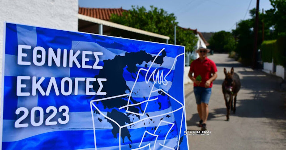 Αγρότης από το Ναύπλιο, πήγε την Κυριακή 25 Ιουνίου 2023 και σε αυτές τις εκλογές, στο εκλογικό τμήμα του Ειδικού Γυμνάσιου Λυκείου Αργολίδας στα Λευκάκια του Δήμου Ναυπλιέων για να ψηφίσει, με τον αγαπημένο του γαϊδαράκο.