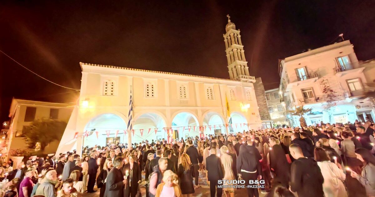 Σε κατανυκτική ατμόσφαιρα ο Μητροπολίτης Αργολίδας έψαλλε το «Χριστός Ανέστη εκ νεκρών θανάτω θάνατον πατήσας και τοις εν τοις μνήμασι, ζωήν χαρισάμενος», κάτω από τον χαρμόσυνο ήχο των κωδωνοκρουσιών από όλες τις εκκλησίες του Ναυπλίου.