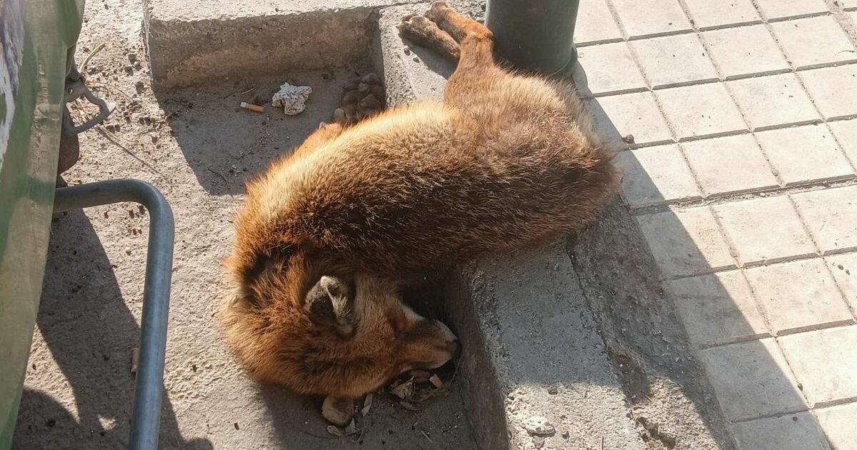 Η αλεπού βρέθηκε σε αυτήν την κατάσταση από μία κάτοικο της περιοχής που είχε βγάλει βόλτα το σκυλί της, νωρίς το πρωί της Παρασκευής. Το άτυχο ζώο έχει κομμένη ουρά και φέρει ένα τραύμα κάτω από το λαιμό.