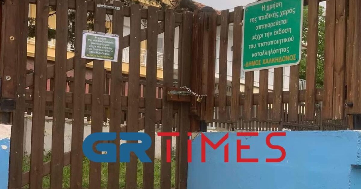 Στις φωτογραφίες του GRTimes, φαίνονται τα λουκέτα στις παιδικές χαρές της περιοχής, με τον δήμο Χαλκηδόνος να έχει αναρτήσει σε όλες τους το μήνυμα «Η χρήση της παιδικής χαράς απαγορεύεται μέχρι την έκδοση πιστοποιητικού καταλληλότητας».