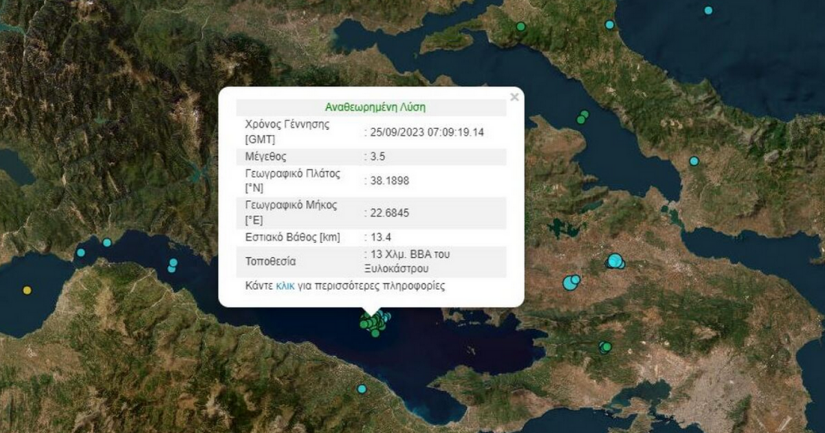 Νέος σεισμός 3,5 Ρίχτερ με επίκεντρο τον Κορινθιακό κόλπο σημειώθηκε το πρωί της Δευτέρας.