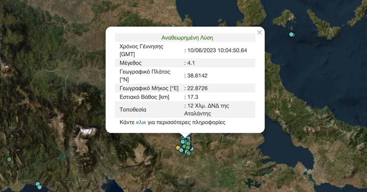 Νέος σεισμός 4,1 Ρίχτερ στην Αταλάντη -Αισθητός στην Αττική