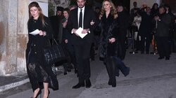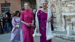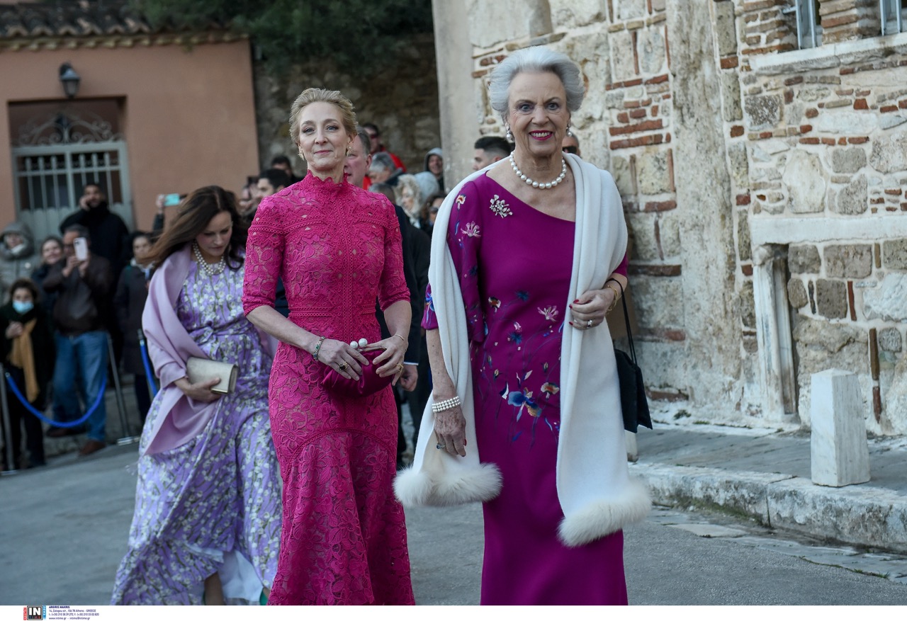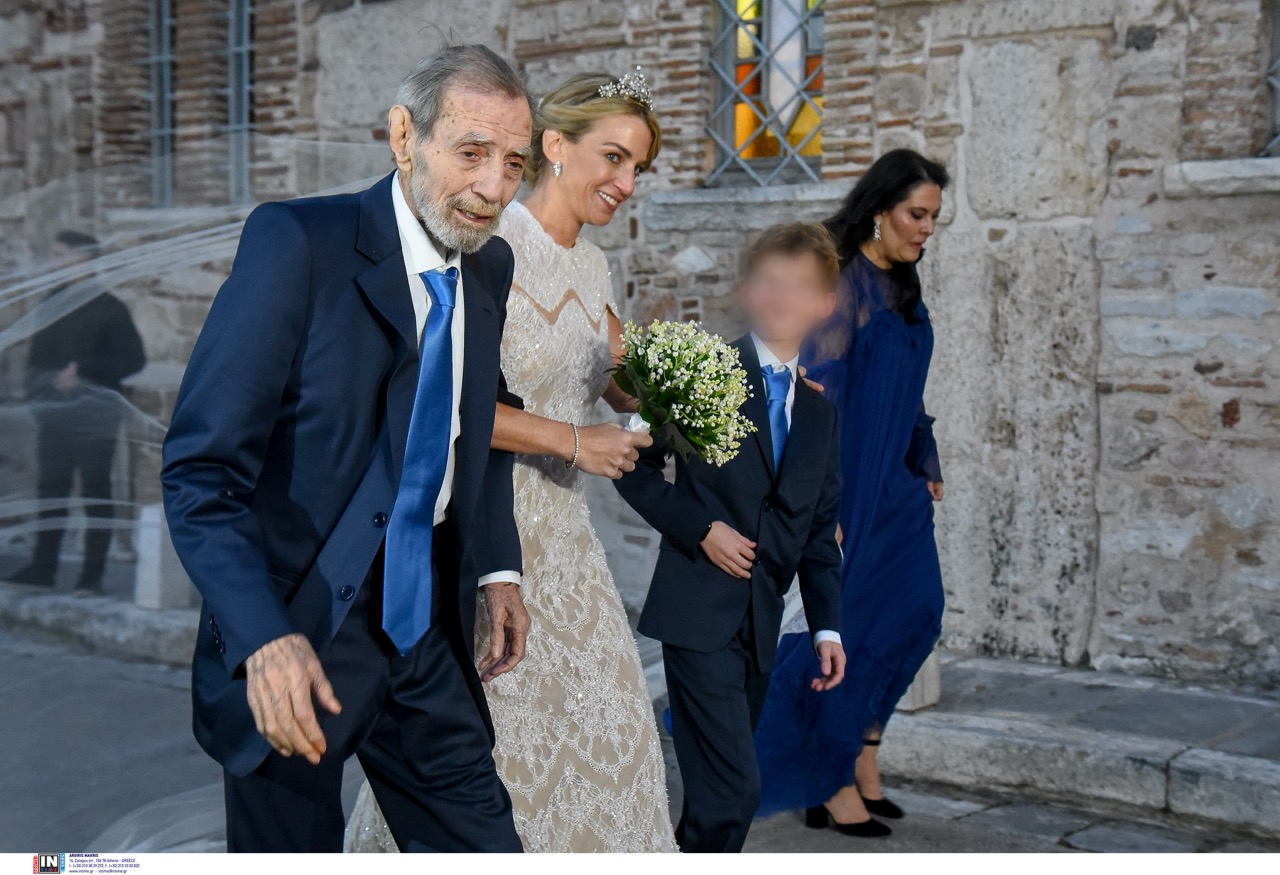 Με μια μικρή καθυστέρηση πέντε λεπτών η Χρυσή Βαρδινογιάννη έχοντας στο πλευρό της τον πατέρα της Γιώργο Βαρδινογιάννη και τον γιο της, έφτασε με την σειρά της στην εκκλησία. Ήταν πιο εντυπωσιακή από ποτέ και έλαμπε από χαρά.