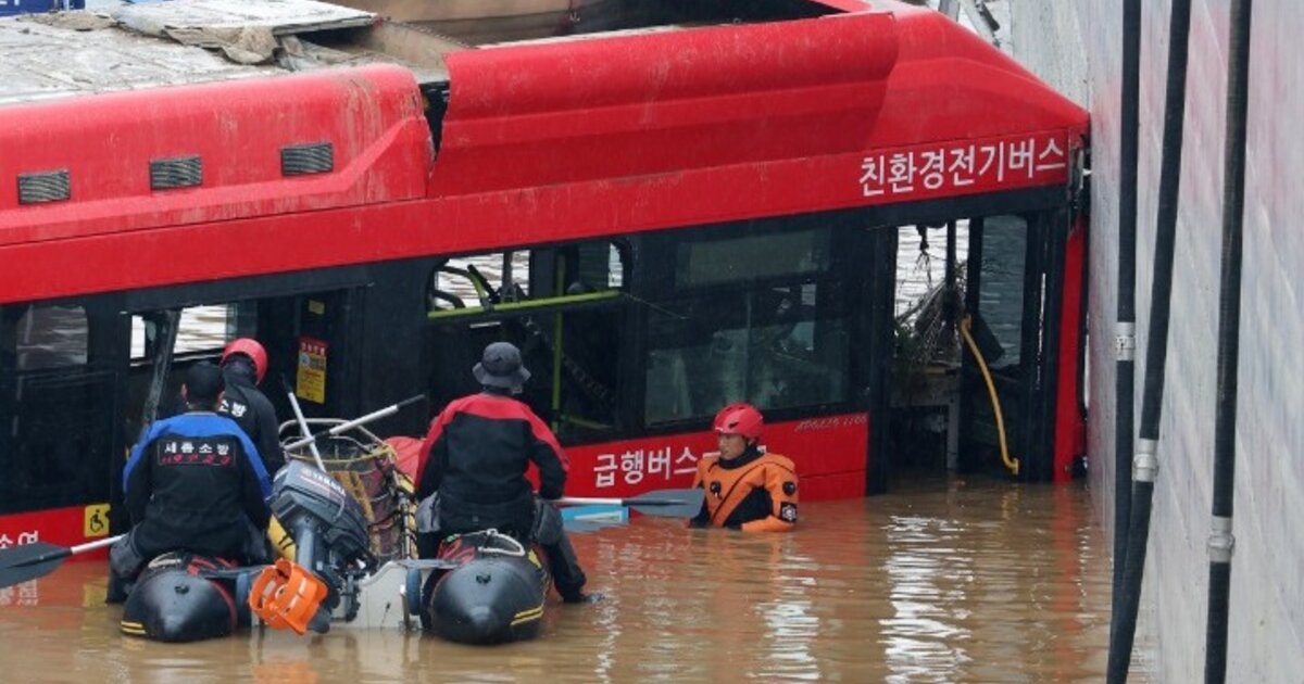 Ο Σέο Τζέονγκ-ιλ, επικεφαλής της πυροσβεστικής υπηρεσίας της δυτικής Τσεονγκτζού, είπε ότι περίπου 15 οχήματα, ανάμεσά τους και ένα λεωφορείο, εκτιμάται ότι έχουν βυθιστεί μέσα σε υπόγεια διάβαση της πόλης λίγο μετά την υπερχείλιση του φράγματος ενός γειτονικού ποταμού εξαιτίας των χθεσινών σφοδρών βροχοπτώσεων.