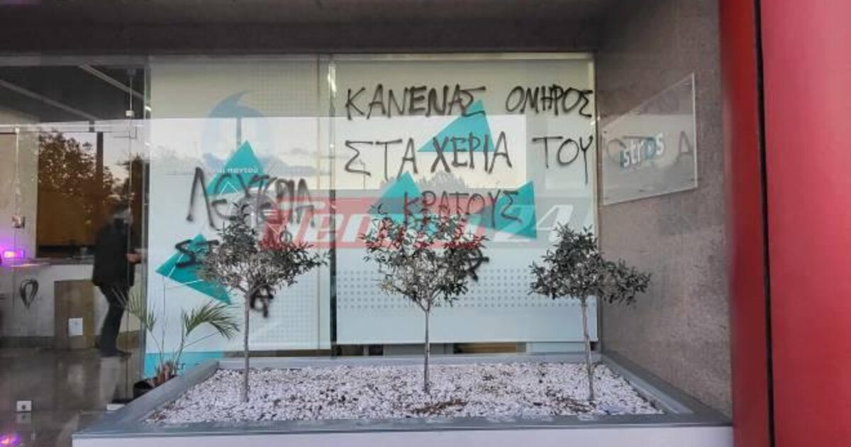 Παρέμβαση πραγματοποίησαν το απόγευμα της Πέμπτης αντιεξουσιαστές, στον τηλεοπτικό σταθμό ΙΟΝΙΑΝ επί της Όθωνος Αμαλίας, στην Πάτρα.