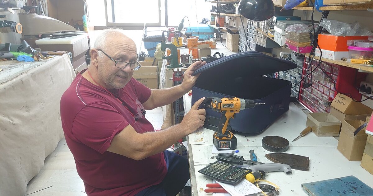 Ο κ. Βαϊρλής, επισκευαστής βαλιτσών και ειδών ταξιδιού, είναι ο μόνος που έχει απομείνει στη Θεσσαλονίκη, στο κατάστημα του οποίου γίνονται όλων των ειδών οι «εγχειρήσεις»