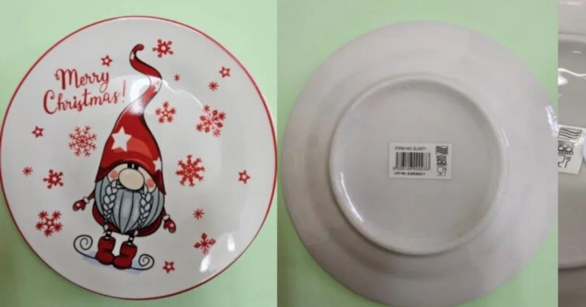 Πιάτο από πορσελάνη με χριστουγεννιάτικη διακόσμηση, προέλευσης Κίνας, στο οποίο διαπιστώθηκαν αυξημένα επίπεδα απελευθέρωσης καδμίου, ανακαλεί από την αγορά ο Ενιαίος Φορέας Ελέγχου Τροφίμων.