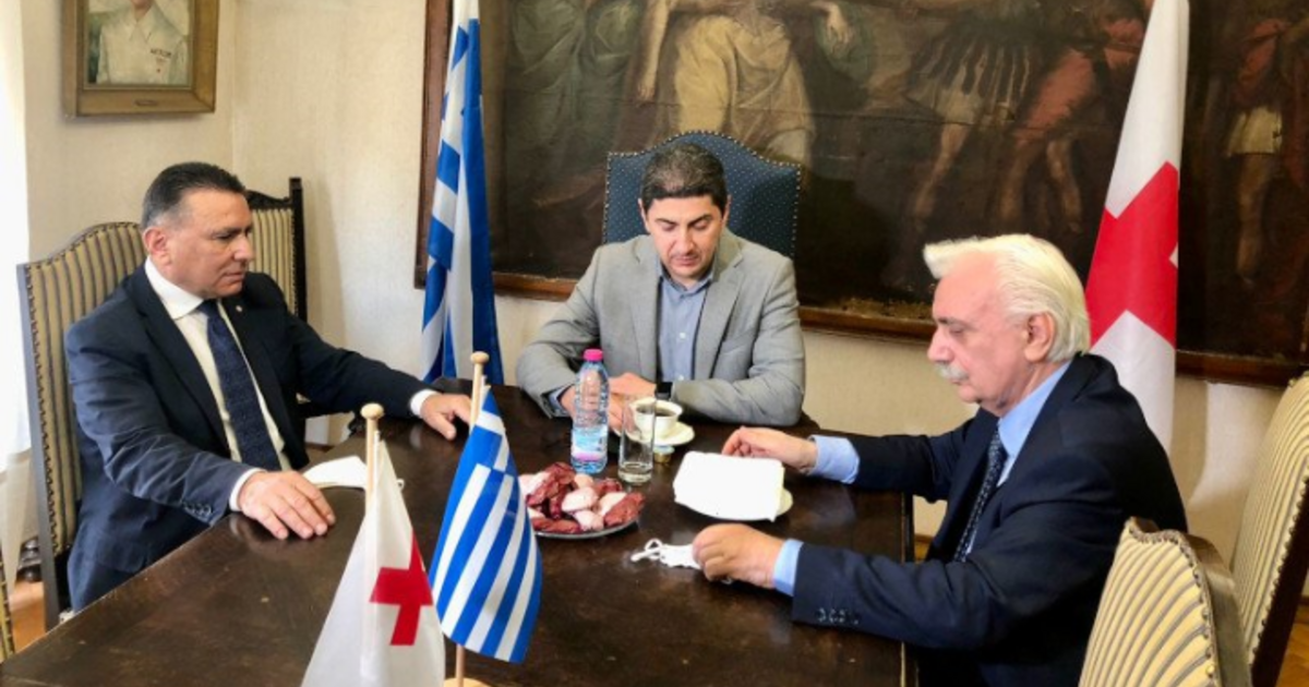 Ο υφυπουργός Αθλητισμού, Λευτέρης Αυγενάκης, πραγματοποίησε επίσκεψη σήμερα το πρωί στα γραφεία του Ερυθρού Σταυρού, σε μία κίνηση έμπρακτης συμπαράστασης, αλλά και έκφρασης ευγνωμοσύνης προς την ηγεσία και τα μέλη της οργάνωσης. Ο πρόεδρος του Ερυθρού Σταυρού, Dr. Αντώνιος Αυγερινός, πρόσφερε στον υφυπουργό ένα αναμνηστικό από το Μουσείο Μπενάκη καθώς και μία σπάνια συλλογή από φωτογραφίες των δράσεων του Ερυθρού Σταυρού από το Β’ Παγκόσμιο Πόλεμο.