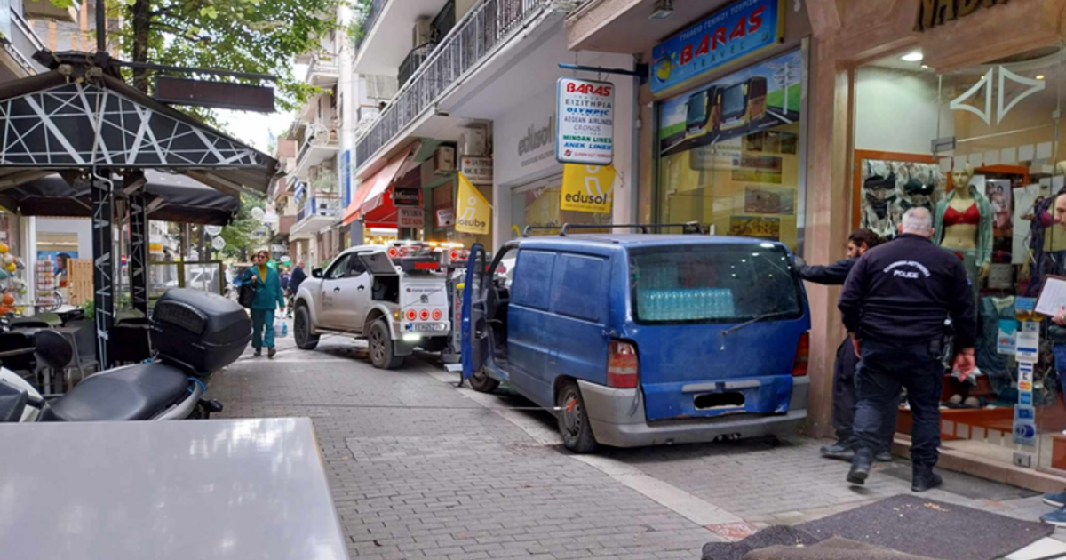 Όχημα… άνοιξε τρύπα σε κεντρικό πεζόδρομο στη Λάρισα