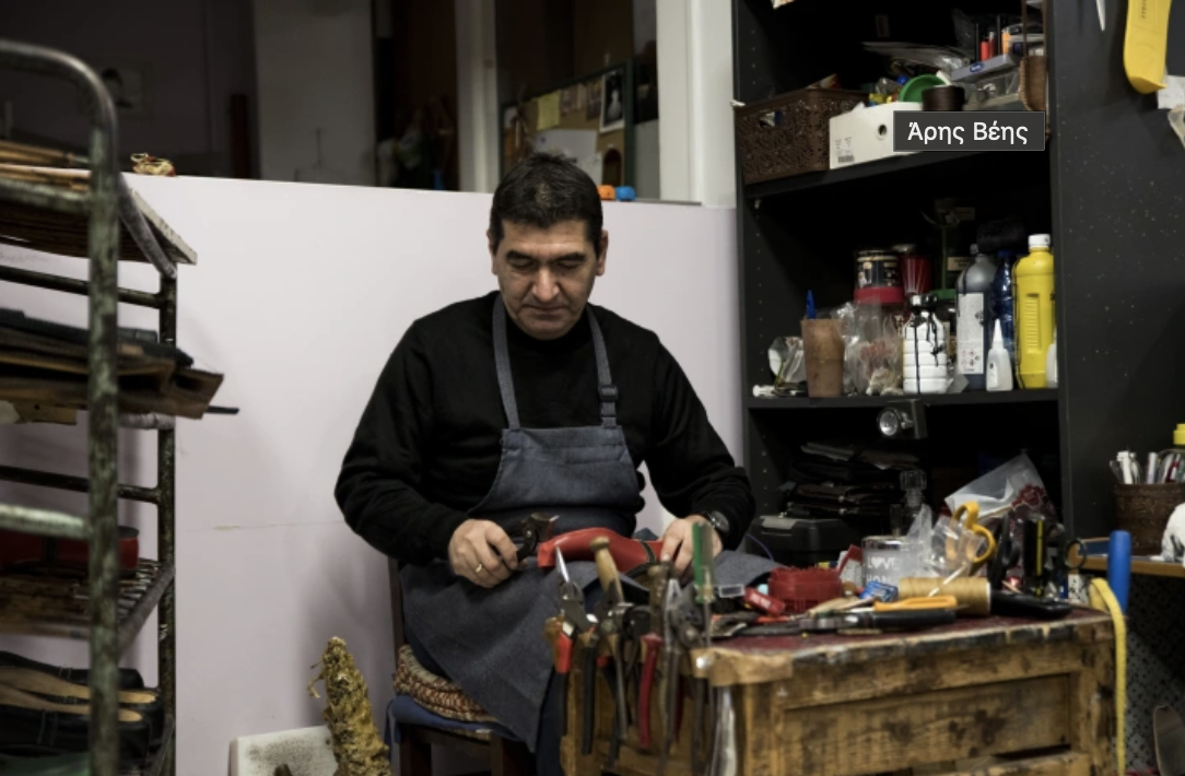 Ο Άρης Βέης φτιάχνει τσαρούχια εδώ και 28 χρόνια σε ένα ημιυπόγειο στο Μπραχάμι