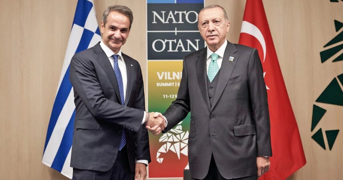 Έγινε μια ειλικρινής συζήτηση σε θετικό κλίμα. Οι δύο ηγέτες έθεσαν το πλαίσιο για τη συνέχεια» αναφέρουν κυβερνητικές πηγές μετά τη συνάντηση του πρωθυπουργού, Κυριάκου Μητσοτάκη και του προέδρου της Τουρκίας, Ρετζέπ Ταγίπ Ερντογάν, που διήρκεσε σχεδόν μία ώρα στο Βίλνιους της Λιθουανίας στο περιθώριο της Συνόδου Κορυφής του ΝΑΤΟ.
