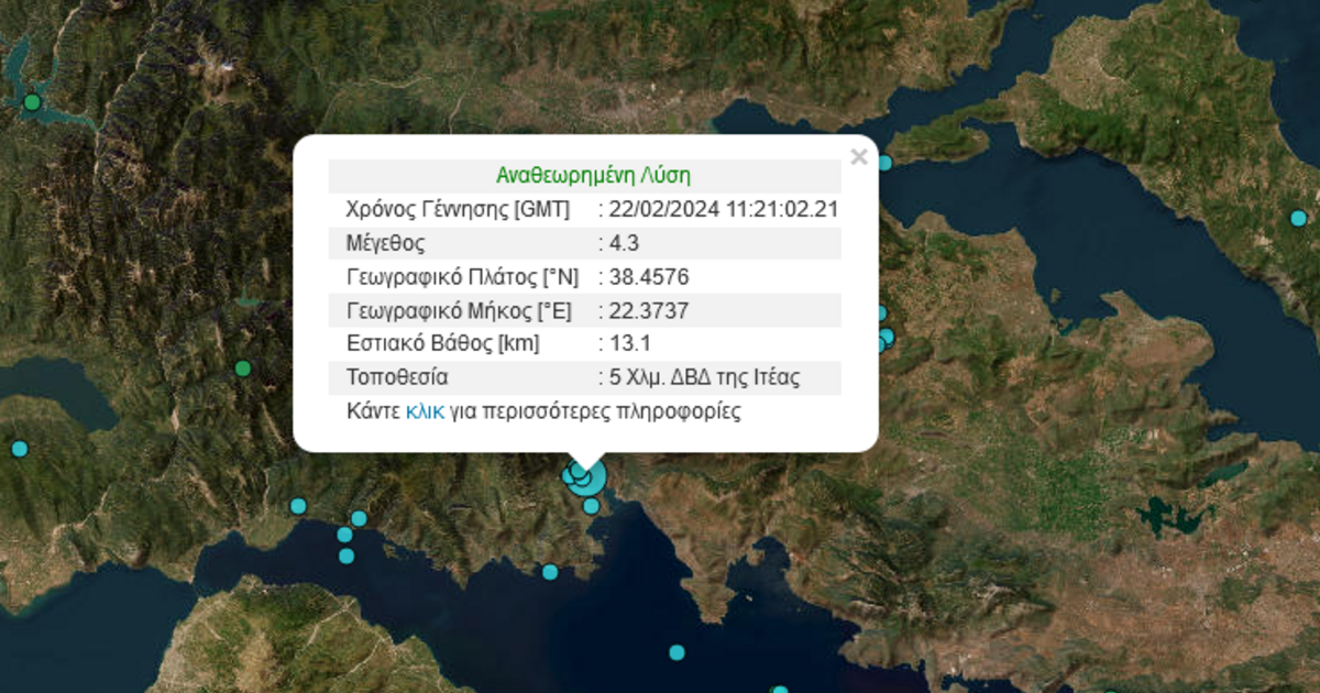Σεισμός μεγέθους 4,3 βαθμών της κλίμακας Ρίχτερ σημειώθηκε στην Ιτέα το μεσημέρι της Πέμπτης 22/2. Για την σεισμική δόνηση μίλησε στο enikos.gr ο σεισμολόγος Γεράσιμος Παπαδόπουλος.