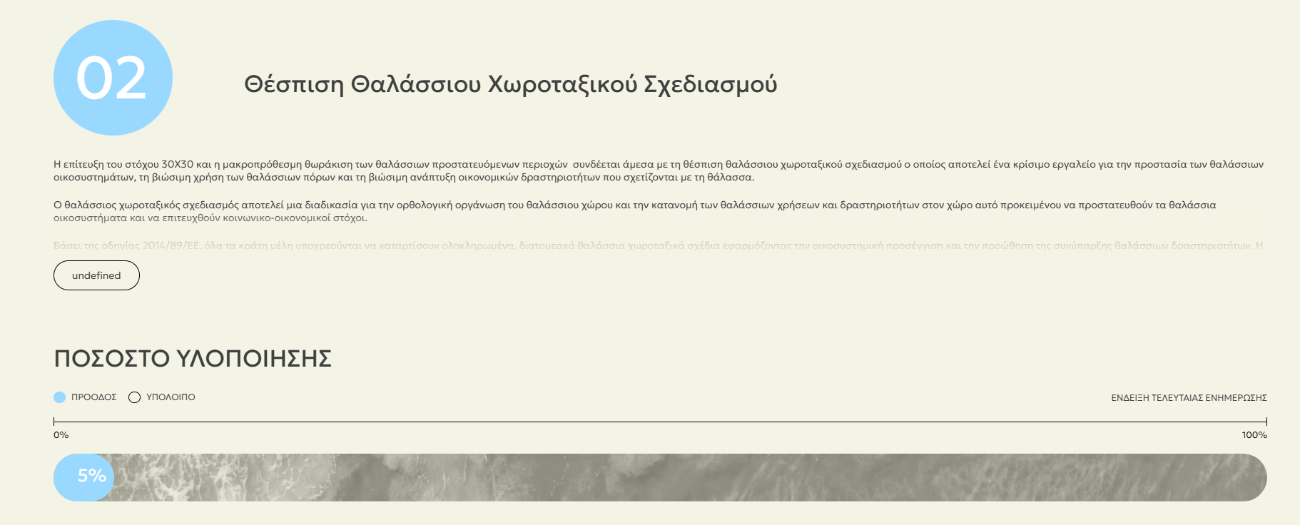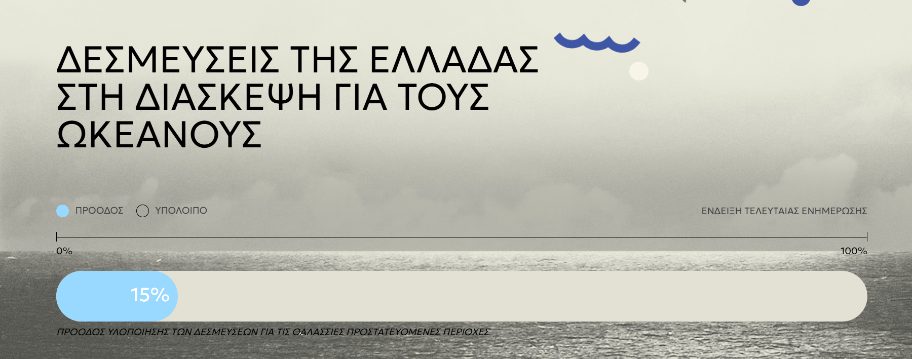 - την υλοποίηση των οκτώ (8) από τις συνολικά 21 κυβερνητικές δεσμεύσεις για τις ΘΠΠ, που ανακοίνωσε επίσημα ο πρωθυπουργός τον Απρίλιο του 2024 κατά τη διάρκεια της 9ης Διεθνούς Διάσκεψης για τους Ωκεανούς, και