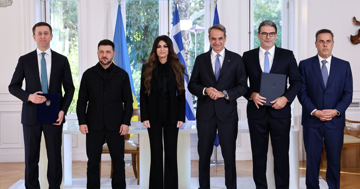 Η υπογραφή έγινε παρουσία του Κυριάκου Μητσοτάκη, του Βολοντίμιρ Ζελένσκι, αλλά και της πρέσβεως των ΗΠΑ, Κίμπερλι Γκιλφόιλ.