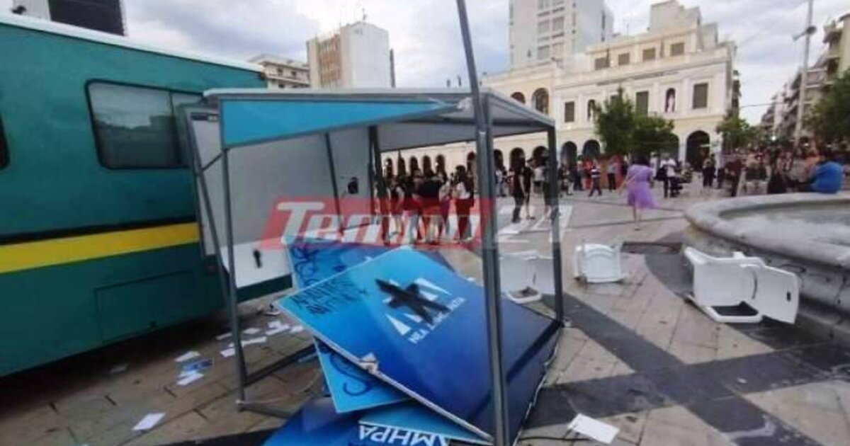 Στο στόχαστρο ομάδας αντιεξουσιαστών μπήκε το εκλογικό περίπτερο της ΝΔ στην πλατεία Γεωργίου, μετά την αντιρατσιστική πορεία για το ναυάγιο στην Πύλο, που πραγματοποιήθηκε το απόγευμα της Πέμπτης στην Πάτρα.
