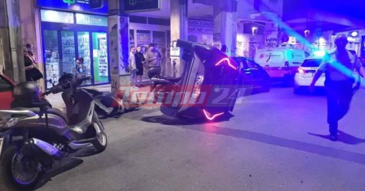 Πάτρα: Τρελή πορεία ΙΧ στο κέντρο - "Τούμπαρε" αφού παρέσυρε τρία άλλα ΙΧ και τρία δίκυκλα