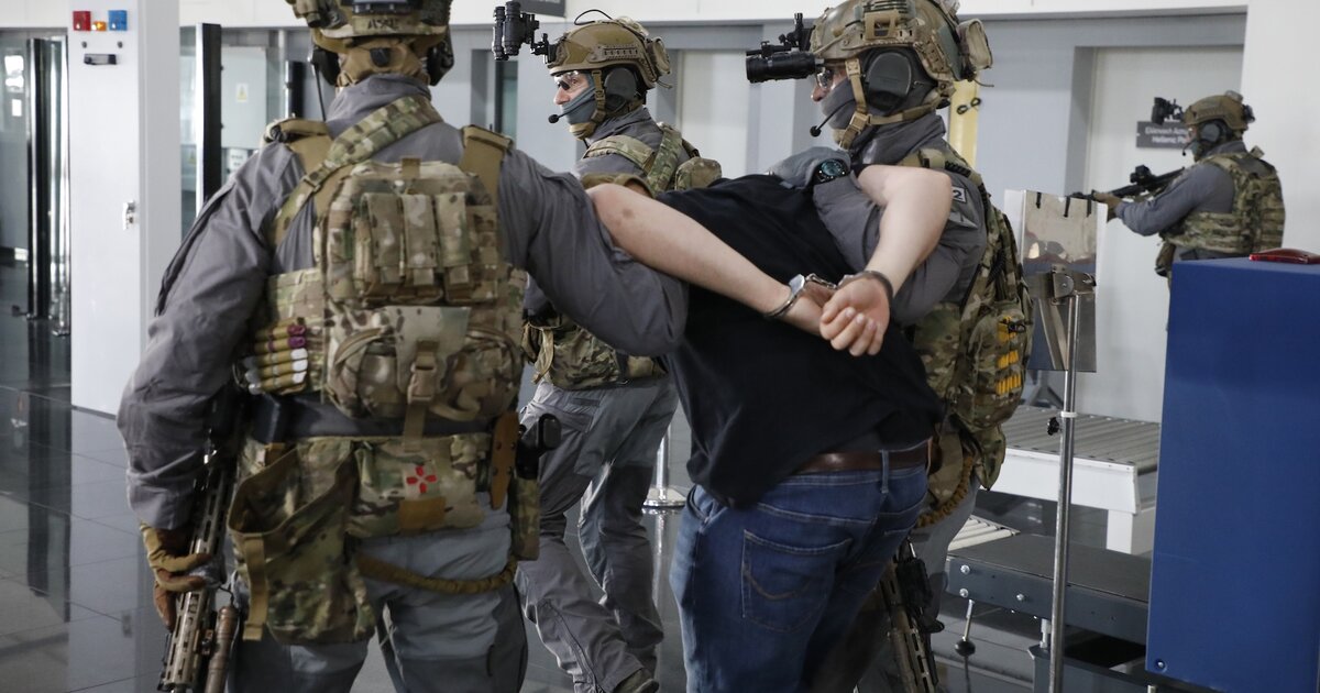 Πάνοπλοι άνδρες των Ειδικών Δυνάμεων, εισέβαλαν στον σταθμό «Θεμιστοκλής» στην Πύλη Ε12 του λιμανιού, προκειμένου να συλλάβουν οπλισμένο άτομο που κρυβόταν σε γραφείο.