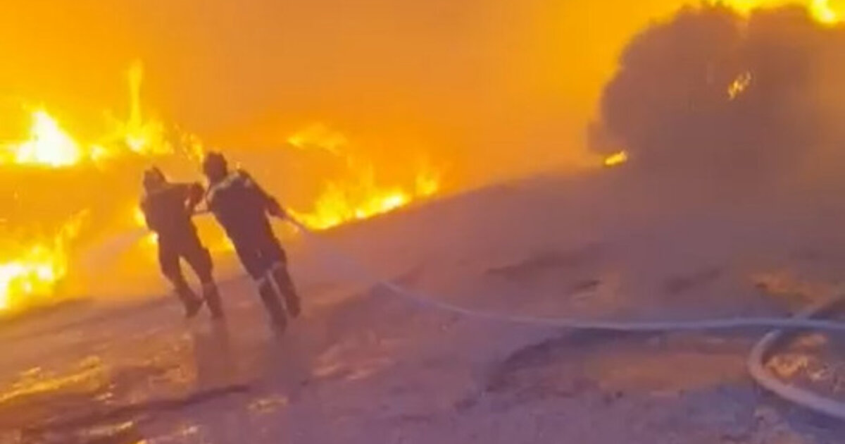 Ανατριχίλα προκαλεί το βίντεο που δείχνει μία ομάδα πυροσβεστών να έχουν περικυκλωθεί από την πύρινη λαίλαπα και να προσπαθούν να σβήσουν τις φλόγες οι οποίες φτάνουν ακόμη και τα δύο μέτρα.