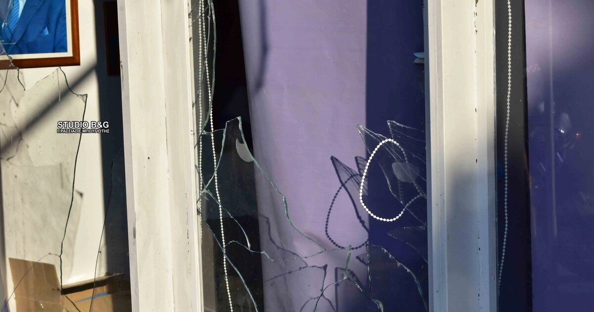 Πέταξαν πέτρες και έσπασαν την τζαμαρία στα γραφεία της ΝΔ στο Ναύπλιο