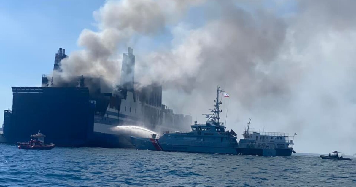 Η φωτιά στην πλώρη σβήστηκε και συνεχίζει να καίει από τα μέσα του πλοίου έως την πρύμνη. Το πλοίο έχει προσδεθεί στα ρυμουλκά οπότε είναι υπό έλεγχο. Χρειάζεται ιδιαίτερη προσοχή για πιθανές εκρήξεις. Η ατμόσφαιρα που έχει δημιουργηθεί είναι τοξική.