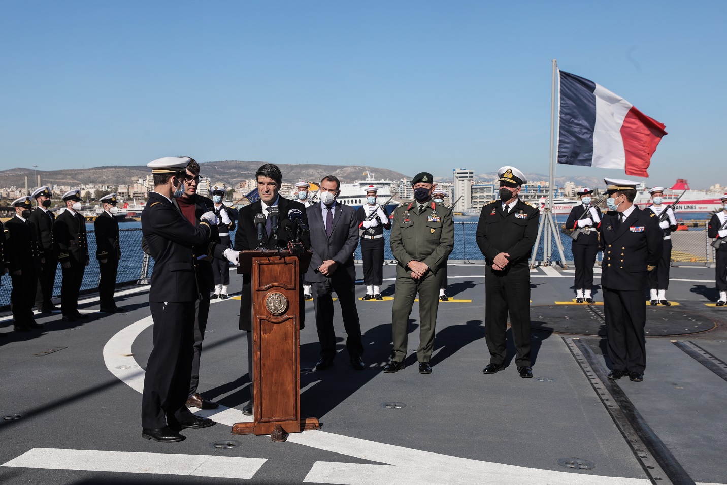 Αναφερόμενος στην παρουσία της φρεγάτας στην Ελλάδα και τις κοινές ασκήσεις με το Πολεμικό Ναυτικό, επισήμανε ότι «αποτελούν μία ακόμα έμπρακτη απόδειξη της ισχυρής, διαχρονικής και στρατηγικής σχέσης Ελλάδας και Γαλλίας, στον τομέα της άμυνας και της ασφάλειας».