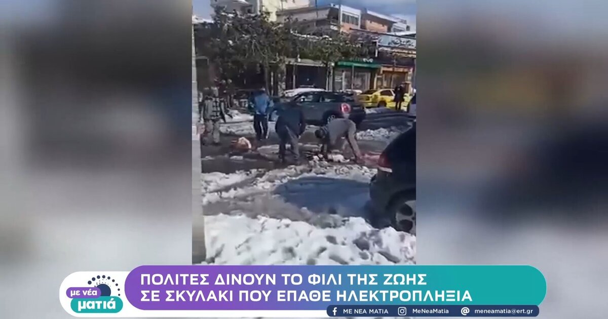 Πολίτες δίνουν το φιλί της ζωής σε σκυλάκι που έπαθε ηλεκτροπληξία