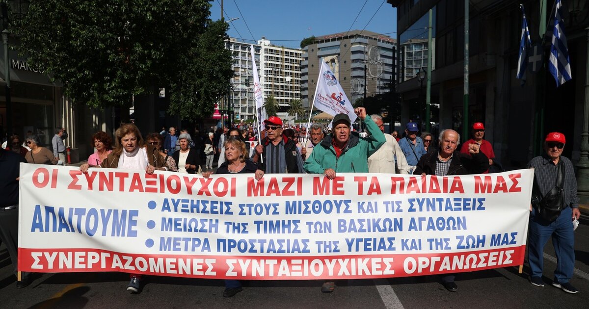 Συγκέντρωση διαμαρτυρίας στην πλατεία Κοτζιά και πορεία προς το υπουργείο Εργασίας και Κοινωνικής Ασφάλισης πραγματοποίησαν σήμερα οι συνεργαζόμενες συνταξιουχικές οργανώσεις, με κεντρικά αιτήματα την άμεση λήψη μέτρων ενάντια στην ακρίβεια, την αποκατάσταση των συντάξεων, την ενίσχυση του δημόσιου συστήματος υγείας.