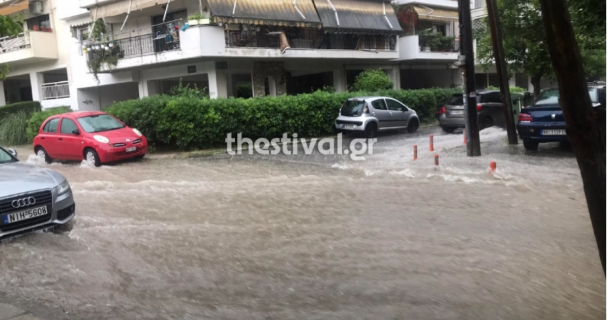 «Ποτάμια» οι δρόμοι μετά την καταιγίδα στην Θεσσαλονίκη
