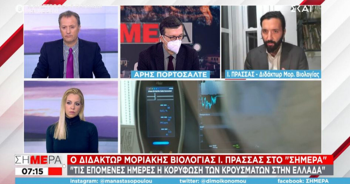 Το φόβο του ότι μπορεί να καταρρεύσει το Εθνικό Σύστημα Υγείας ως αποτέλεσμα των αυξημένων νοσηλειών εξέφρασε ο διδάκτωρ Μοριακής Βιολογίας στο πανεπιστήμιο του Τορόντο, Γιάννης Πρασσάς, μιλώντας στον ΣΚΑΪ και την εκπομπή «Σήμερα».