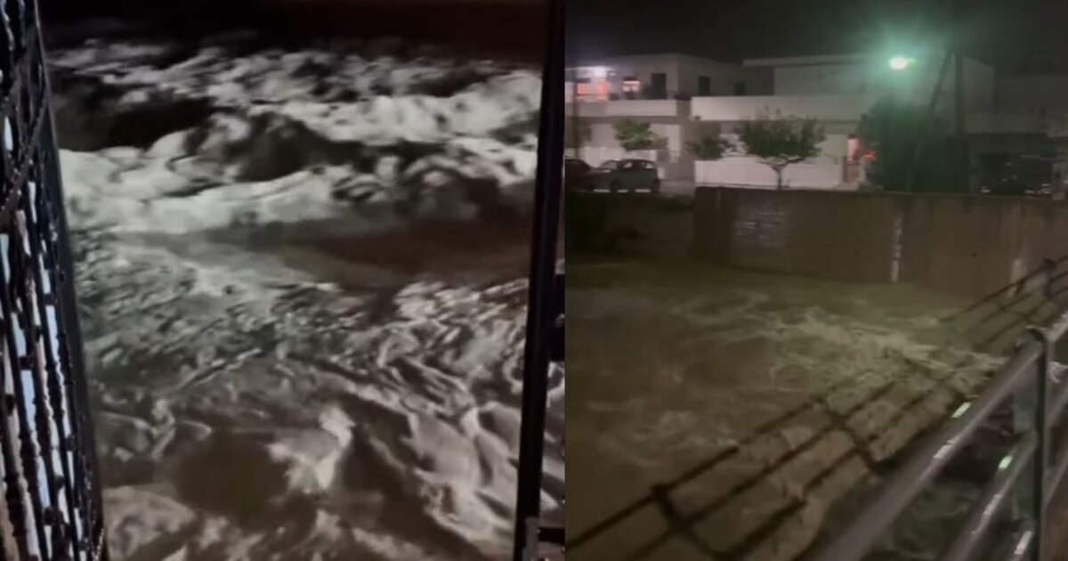 Στη Λάρδο, τα νερά έχουν μπει στις αυλές των σπιτιών, καθώς οι δρόμοι μοιάζουν με χειμάρρους, με τους κατοίκους να μην μπορούν να βγουν από τα σπίτια τους.
