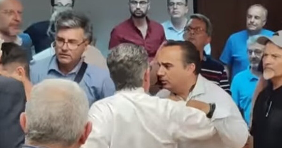 Μάλιστα, κάποια στιγμή, η κατάσταση πήγε να βγει εκτός ελέγχου καθώς πρώην δήμαρχος πιάστηκε στα χέρια με πολίτες που βρισκόντουσαν στην αίθουσα.