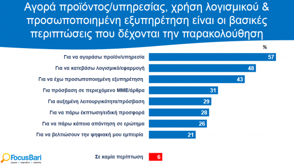 Όταν η τεχνολογία τους ζητά να επιτρέψουν την παρακολούθηση ή το ιστορικό της πλοήγησής τους, οι δύο στους τρεις Έλληνες ανταποκρίνονται επιλεκτικά και υπό προϋποθέσεις, με συχνότερες: