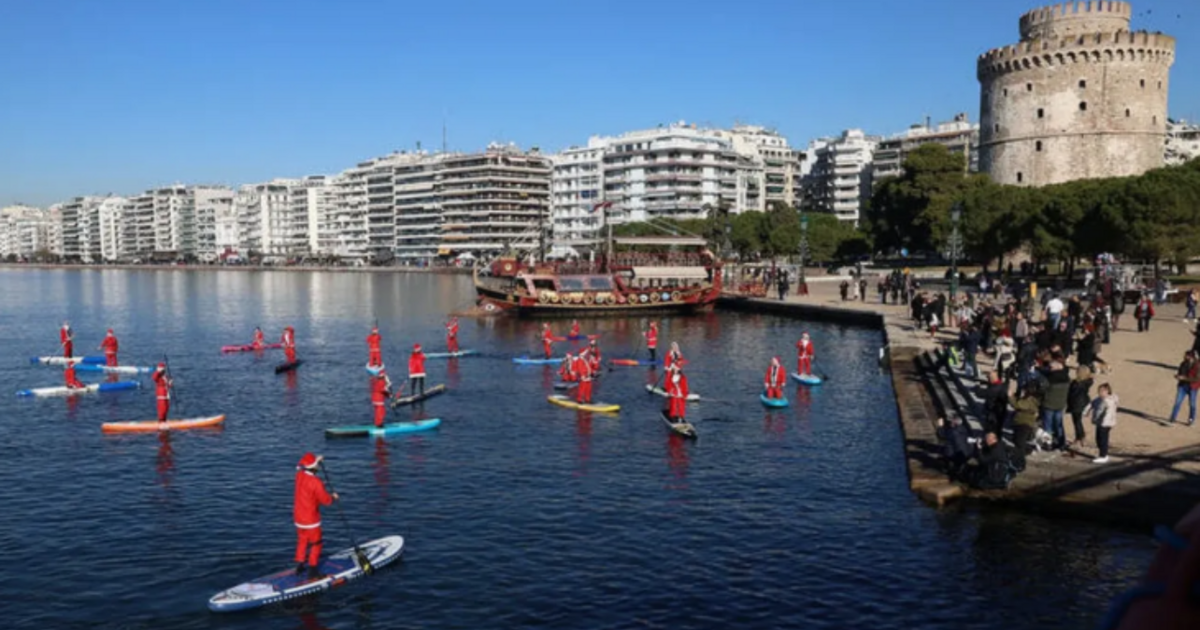 Πρόκειται για 30 Άι Βασίληδες που, ξεκινώντας από τον Λευκό Πύργο, θα «σκίσουν» τα νερά μπροστά από το λιμάνι της πόλης, στο πλαίσιο του 4oυ SANTA SUP.