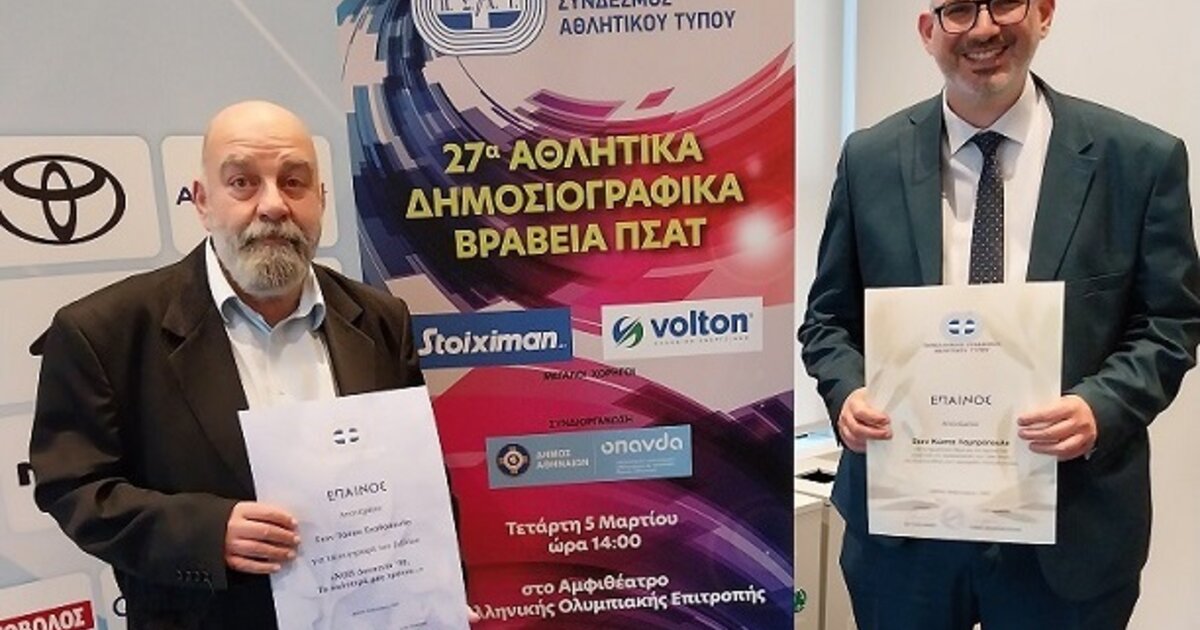 Οι δημοσιογράφοι μέλη της ΕΣΗΕΠΗΝ, Τάσσος Σταθόπουλος, Κώστας Λαμπρόπουλος, Νίκος Μαρκάκης, βραβεύθηκαν από τον Πανελλήνιο Σύνδεσμο Αθλητικού Τύπου στη λαμπρή τελετή των 27ων Δημοσιογραφικών Βραβείων, που πραγματοποιήθηκε την Τετάρτη 5 Μαρτίου στο Αμφιθέατρο της Ελληνικής Ολυμπιακής Επιτροπής στην Αθήνα.