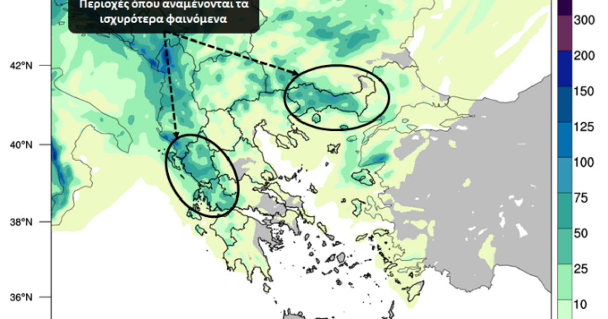 Κατά τη διάρκεια της νύχτας βροχές και καταιγίδες με πιθανότητα χαλαζοπτώσεων θα εκδηλωθούν και στη Θράκη και στο βόρειο Αιγαίο, όπου μάλιστα κατά τόπους θα είναι πολύ ισχυρές. Από αύριο το πρωί τα φαινόμενα θα εντοπίζονται κυρίως στα κεντρικά και βόρεια ηπειρωτικά, στη δυτική Πελοπόννησο, στο Ιόνιο και στο βόρειο και ανατολικό Αιγαίο. Σύμφωνα με την κατηγοριοποίηση των επεισοδίων βροχόπτωσης (Regional Precipitation Index), η οποία εφαρμόζεται από τη μονάδα Meteo του Εθνικού Αστεροσκοπείου Αθηνών, το επεισόδιο βροχόπτωσης για αύριο κατατάσσεται στην Κατηγορία 2 (Μέτρια).