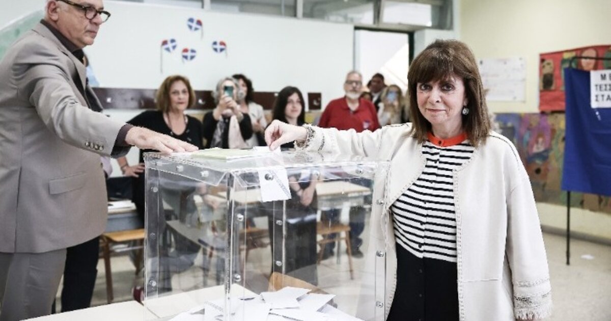 Η Πρόεδρος της Δημοκρατίας, Κατερίνα Σακελλαροπούλου, άσκησε το εκλογικό της δικαίωμα στις 12 το μεσημέρι στο 44ο δημοτικό σχολείο Αθηνών.