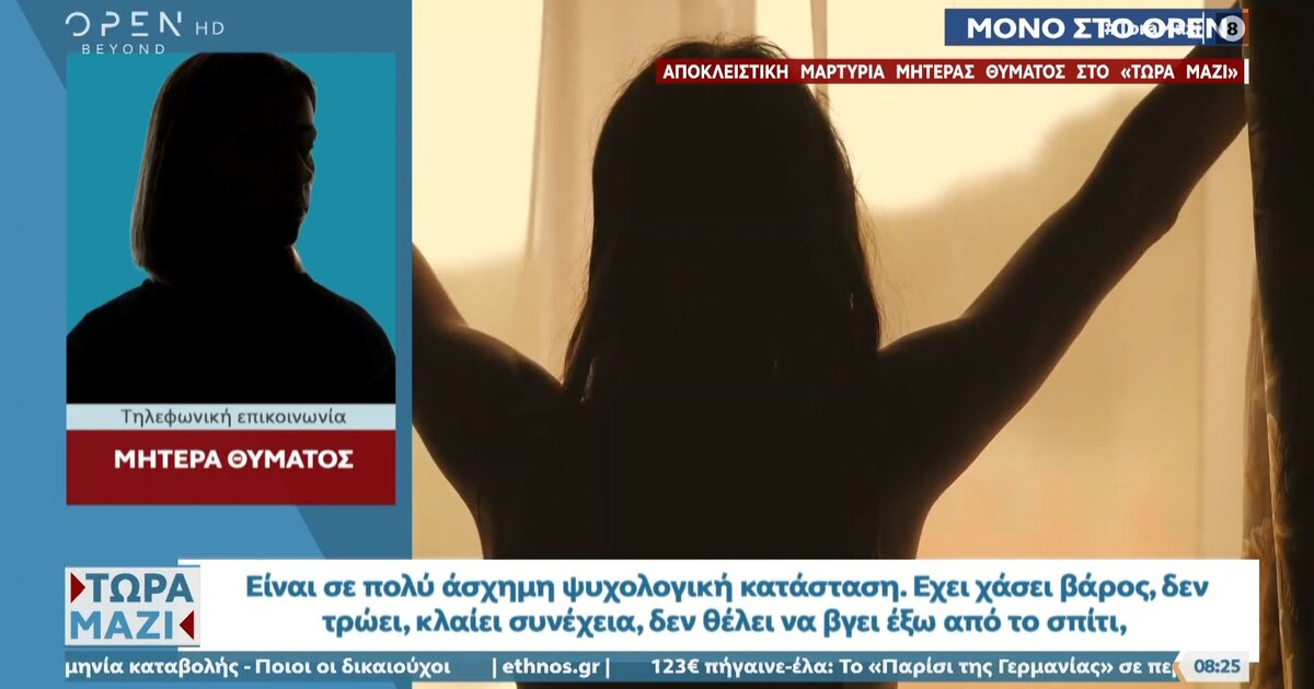 Συγκλονιστική είναι η μαρτυρία μητέρας ενός εκ των 141 θυμάτων revenge porn στην Πάτρα που μίλησε στην εκπομπή «Τώρα Μαζί» του OPEN για την εμπειρία της κόρης της, αποκαλύπτοντας πως το κορίτσι δεν γνώριζε ότι βιντεοσκοπείται. Μιλώντας για την άσχημη ψυχολογία της σχολίασε πως «έχει χάσει βάρος, δεν τρώει, κλαίει συνέχεια».
