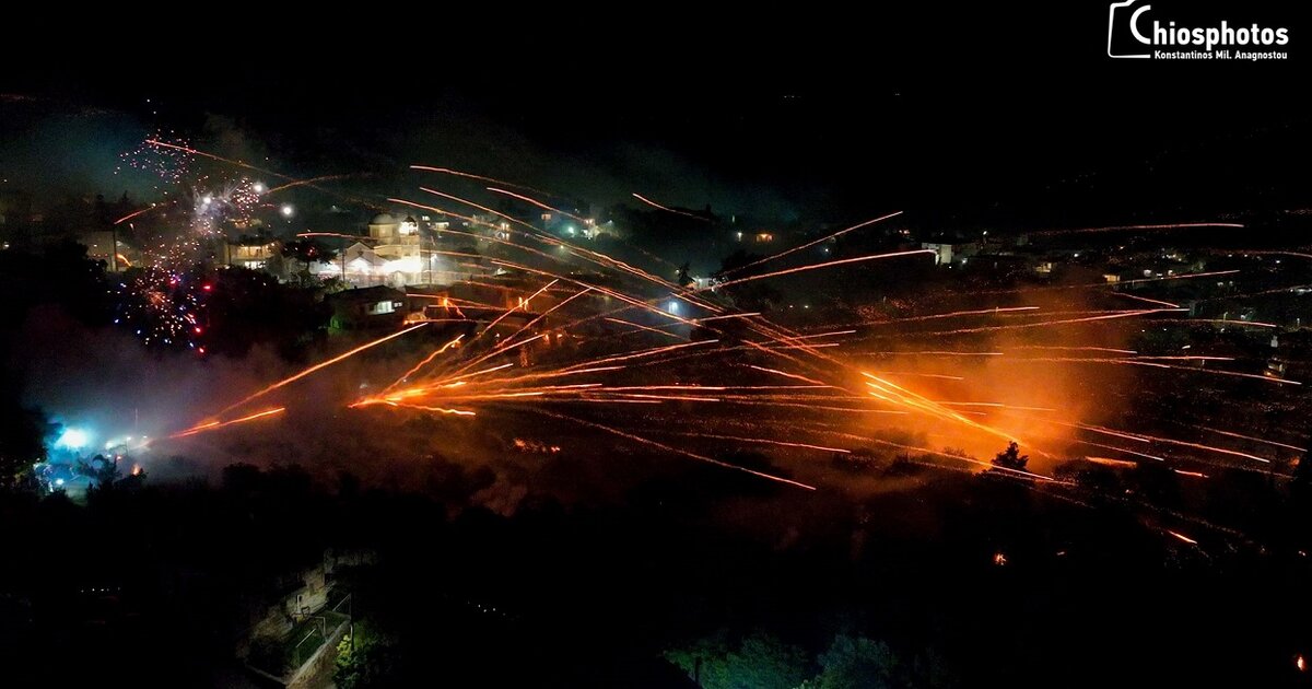 Το εντυπωσιακό πασχαλινό έθιμο του ρουκετοπόλεμου αναβίωσε και φέτος το Μεγάλο Σάββατο στον Βροντάδο της Χίου, συγκεντρώνοντας πλήθος θεατών από την Ελλάδα και το εξωτερικό.