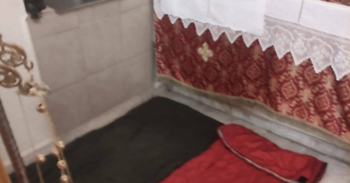 Χωρίς να αντιλαμβάνονται τη σημασία του χώρου, άπλωσαν στο πάτωμα τα πράγματά τους χρησιμοποιώντας τον ναό ως κατάλυμα.