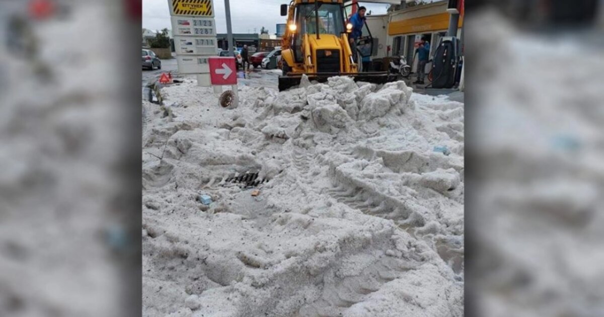 Σαντορίνη: Πρωτοφανείς εικόνες – «Πνίγηκε» στο χαλάζι