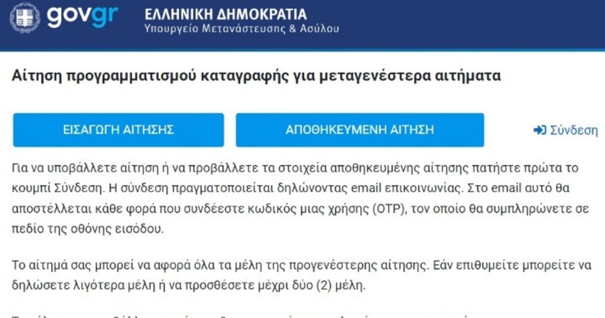 Σε λειτουργία η πλατφόρμα «Προγραμματισμός Απόδοσης Ραντεβού για υποβολή μεταγενέστερης αίτησης»