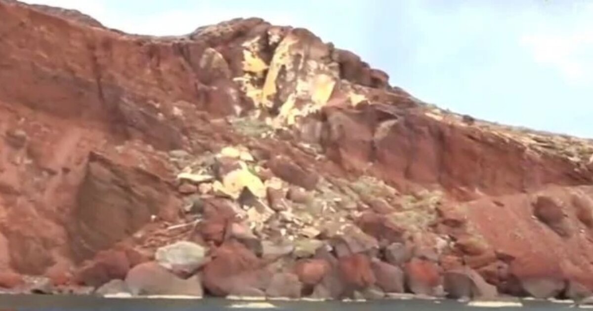 Την Τρίτη, έγινε κατολίσθηση, καθώς τμήματα βράχων αποκολλήθηκαν με αποτέλεσμα να πέσουν στην παραλία, όπως φαίνεται στα πλάνα που μετέδωσε το MEGA.