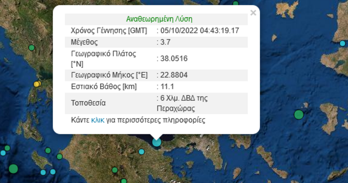 Σεισμός 3,7 Ρίχτερ έγινε πριν από λίγη ώρα στην Κορινθία και συγκεκριμένα 6 χιλιόμετρα από την Περαχώρα.