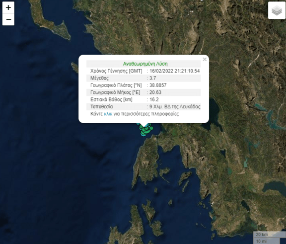 Λίγες ώρες νωρίτερα είχε προηγηθεί δόνηση μεγέθους 3,7 βαθμών της κλίμακας Ρίχτερ, στην ίδια περιοχή. Ο εν λόγω σεισμός καταγράφηκε στις 23:21, σε εστιακό βάθος 16,2 χλμ., ενώ το επίκεντρο εντοπίστηκε 9 χιλιόμετρα βορειοδυτικά της Λευκάδας.