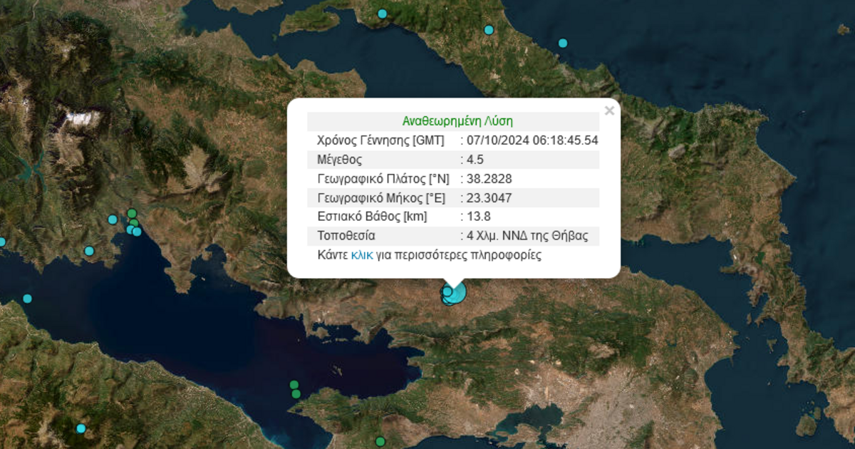Όπως είπε ο σεισμολόγος στο enikos.gr για τα 4,4 Ρίχτερ, «ο σεισμός έγινε στις 09:19, 5 χλμ. νότια της Θήβας. Σύμφωνα με το Ευρωμεσογειακό Ινστιτούτο, ο σεισμός είχε μέγεθος 4,8 Ρίχτερ. Έγινε δε, αισθητός και σε κάποιες περιοχές της Αττικής».