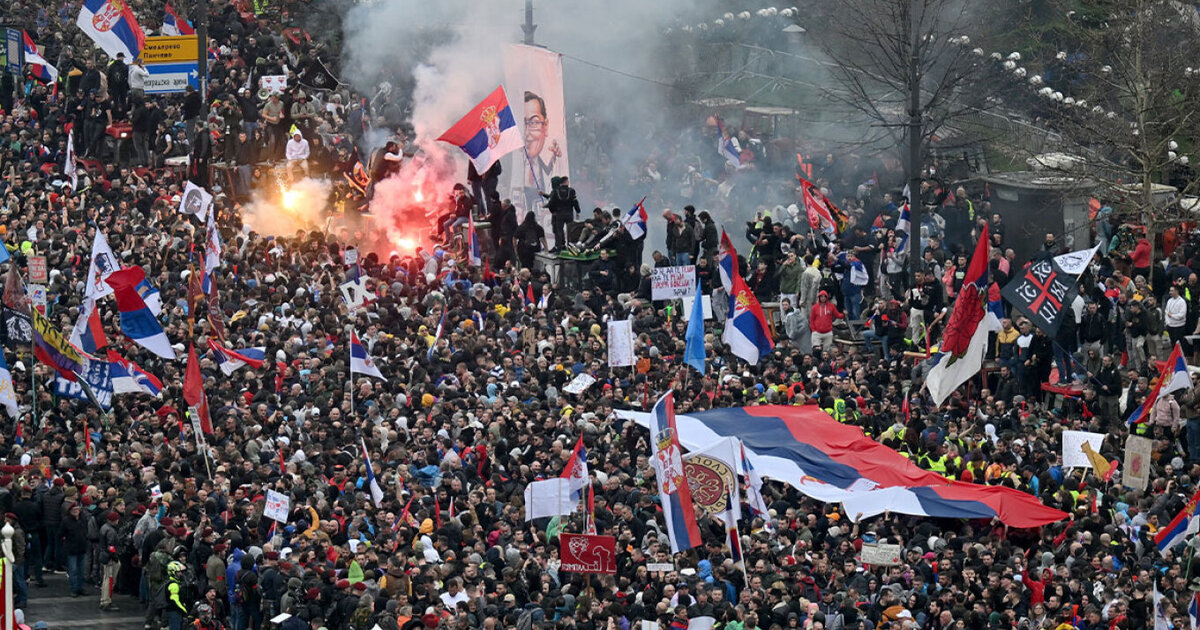Οι φοιτητές μπλοκάρουν εδώ και έξι μήνες περίπου τα δημόσια πανεπιστήμια, απαιτώντας να λογοδοτήσουν οι υπεύθυνοι για τον θάνατο 16 ανθρώπων από την κατάρρευση του γείσου στον σιδηροδρομικό σταθμό του Νόβι Σαντ την 1η Νοεμβρίου του 2024.