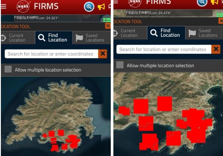 Μεγάλο μέρος της νοτιοανατολικής πλευράς του νησιού έχουν καεί ολοσχερώς