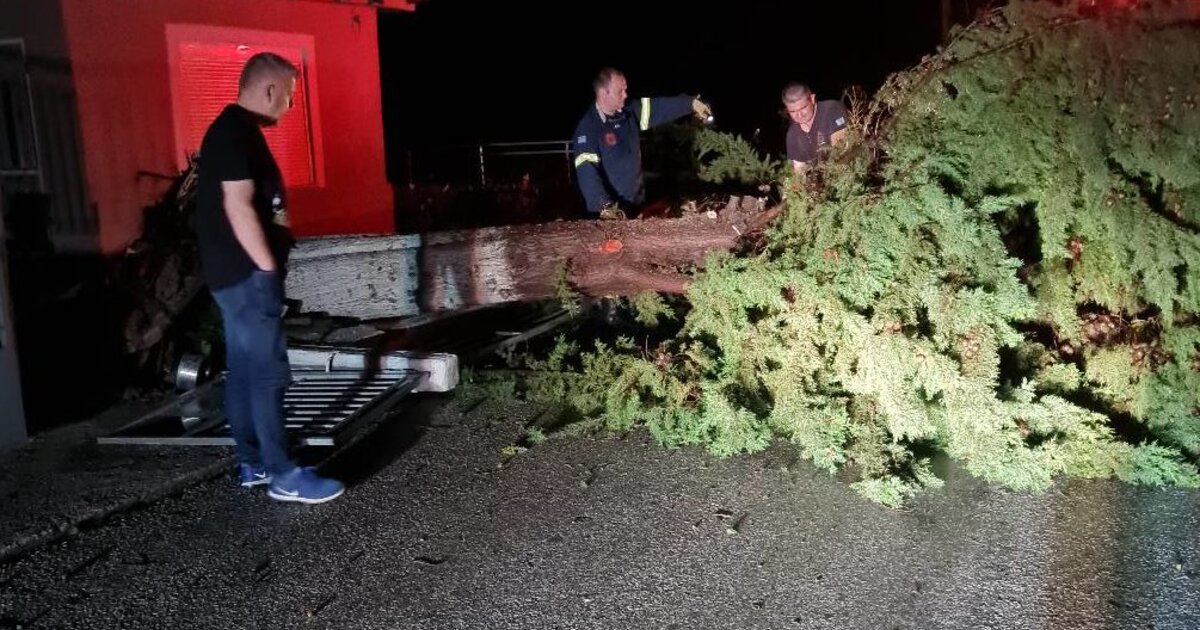 H Π.Υ. Σερρών δέχθηκε πολλές κλήσεις για πτώσεις δένδρων όπως στον Εθνικό δρόμο Σερρών-Δράμας στο ύψος του Γαζώρου.